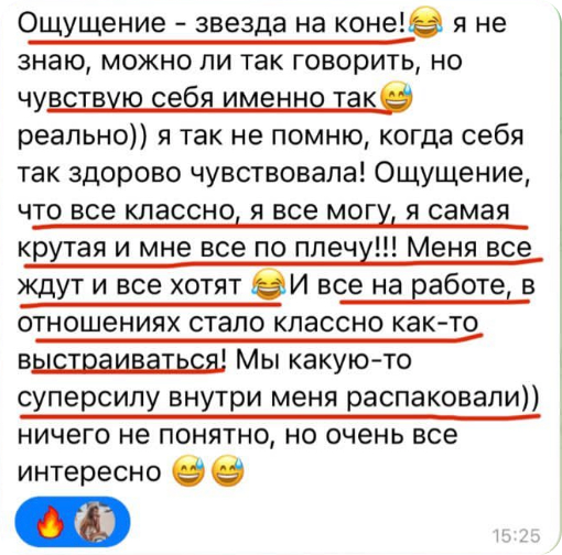 Для этого работали с уверенностью, освобождались от стыда, страхов, ощущения беспомощности, страхом ответственности.